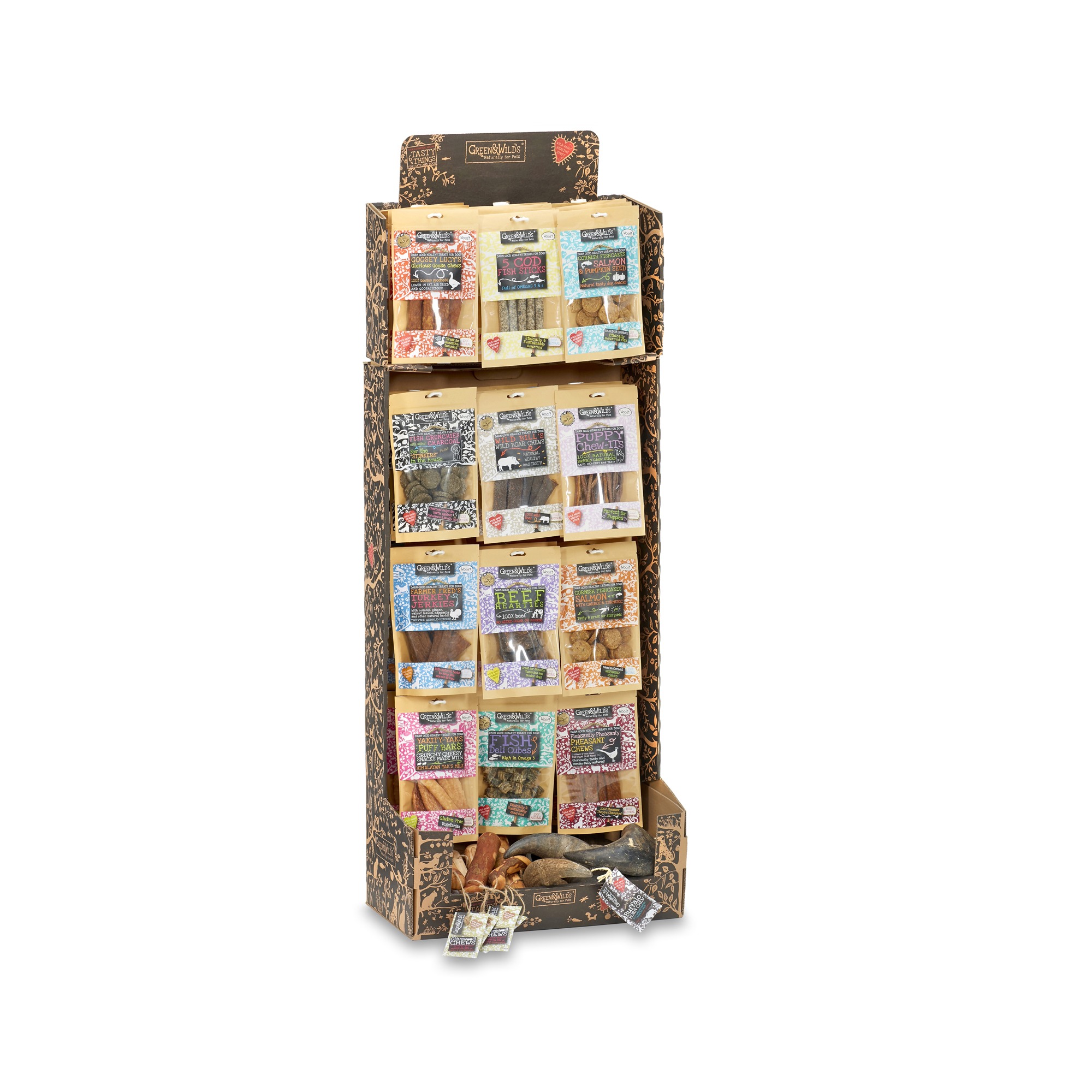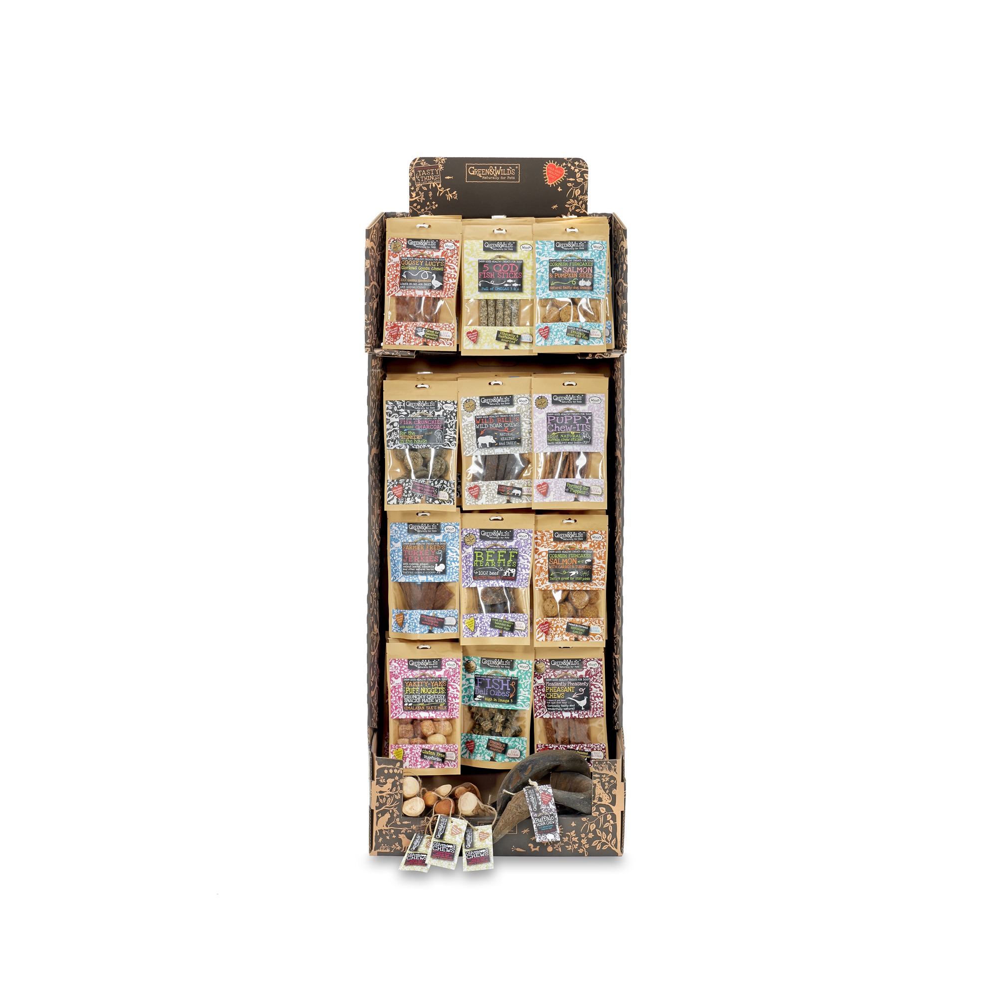 NEW! This recycled cardboard stand has been custom designed to fit our treat pouches and complements our existing range of cardboard display stands. It will create an eye catching display in any retail setting, either as a stand alone display or grouped with any other of our cardboard stands.
