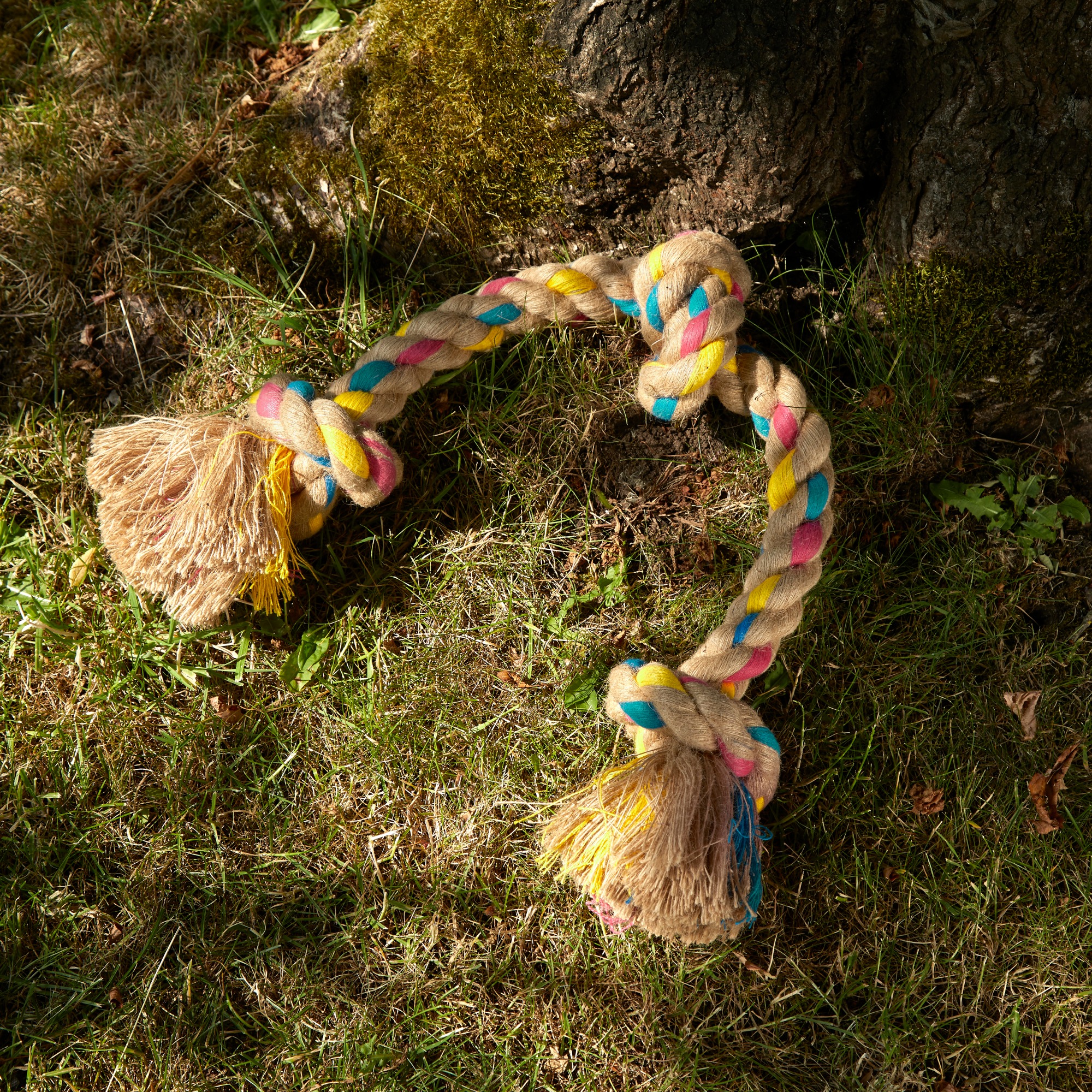 Made from knotted jute rope which is a natural, sustainable plant fibre, it's great for interactive play or chewing. Jute is also 100% biodegradable.