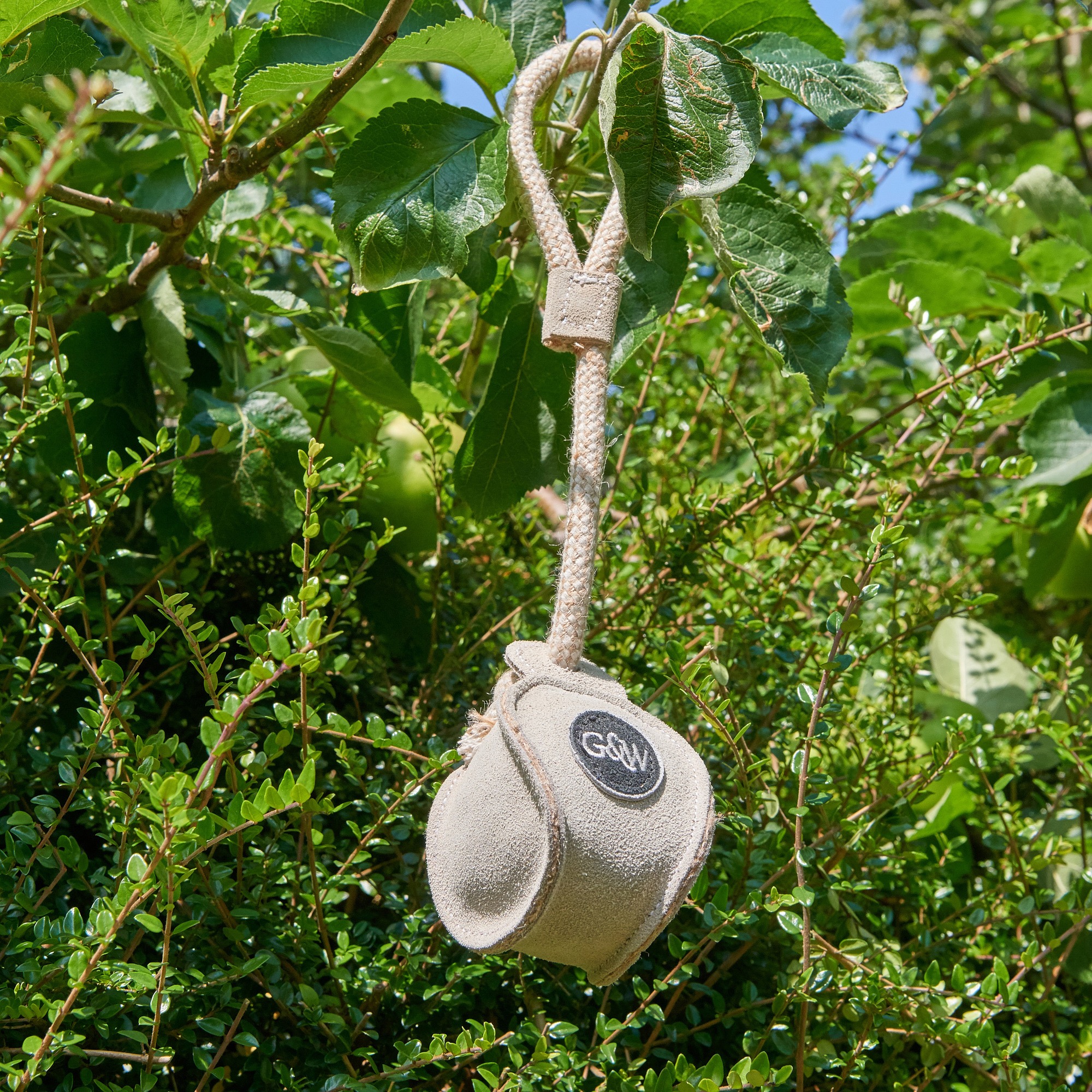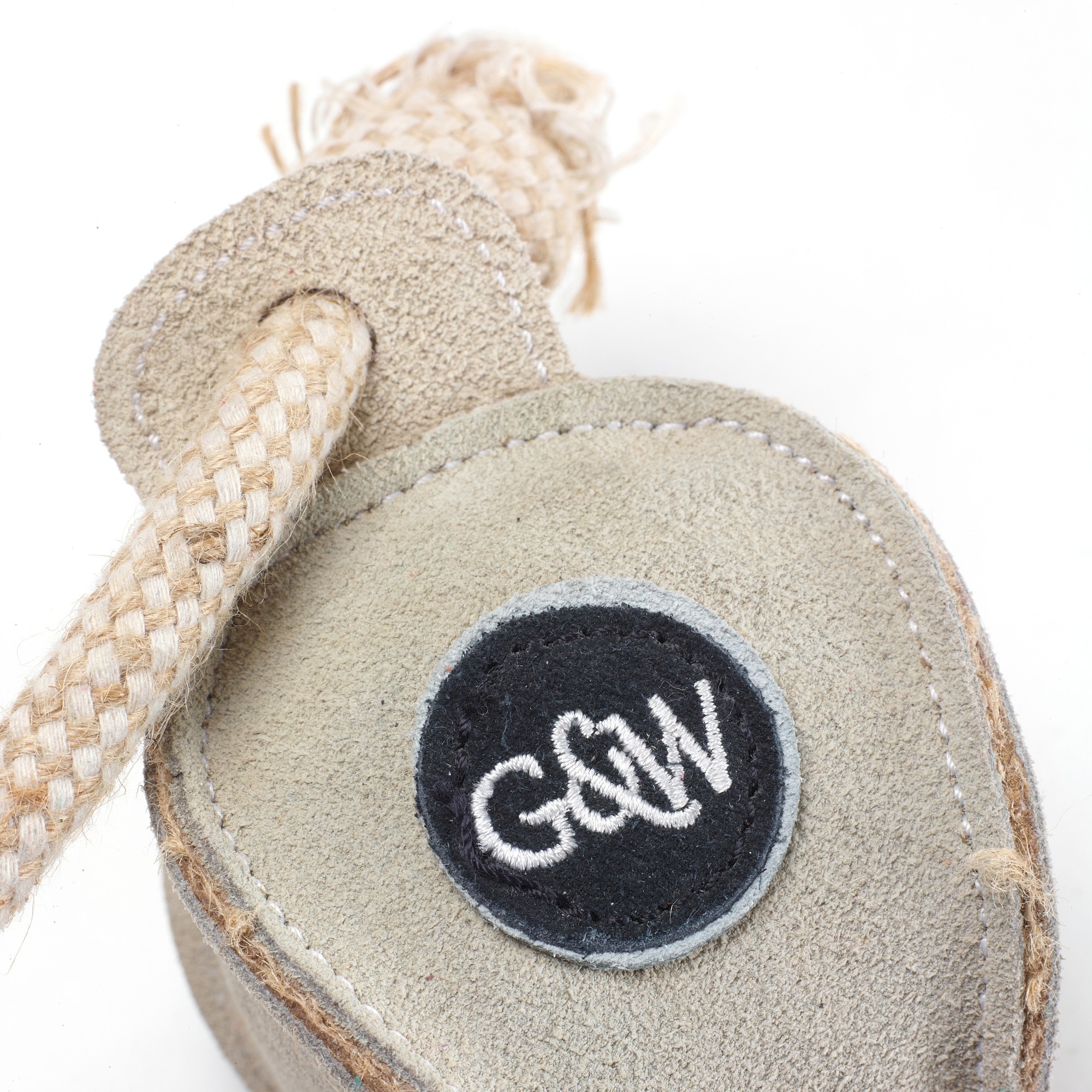 The Chuck Ball has four layers of jute, twin-stitched over a recycled cotton and jute rope, and then covered in a soft suede.