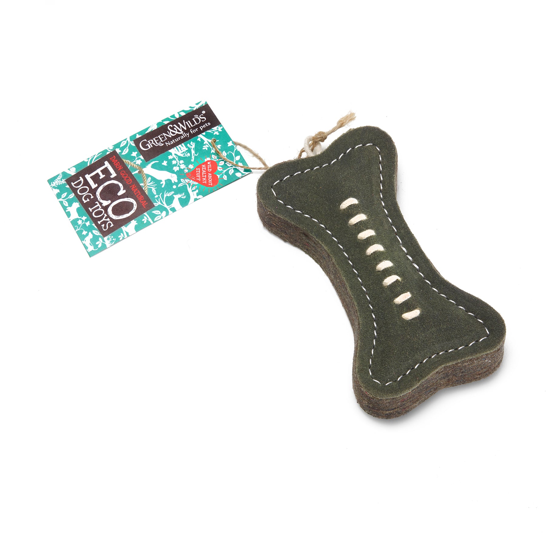 Our Green Bone is a fun toy made from many layers of compressed felt and covered in soft suede. A smaller-sized toy that is good for little dogs.
