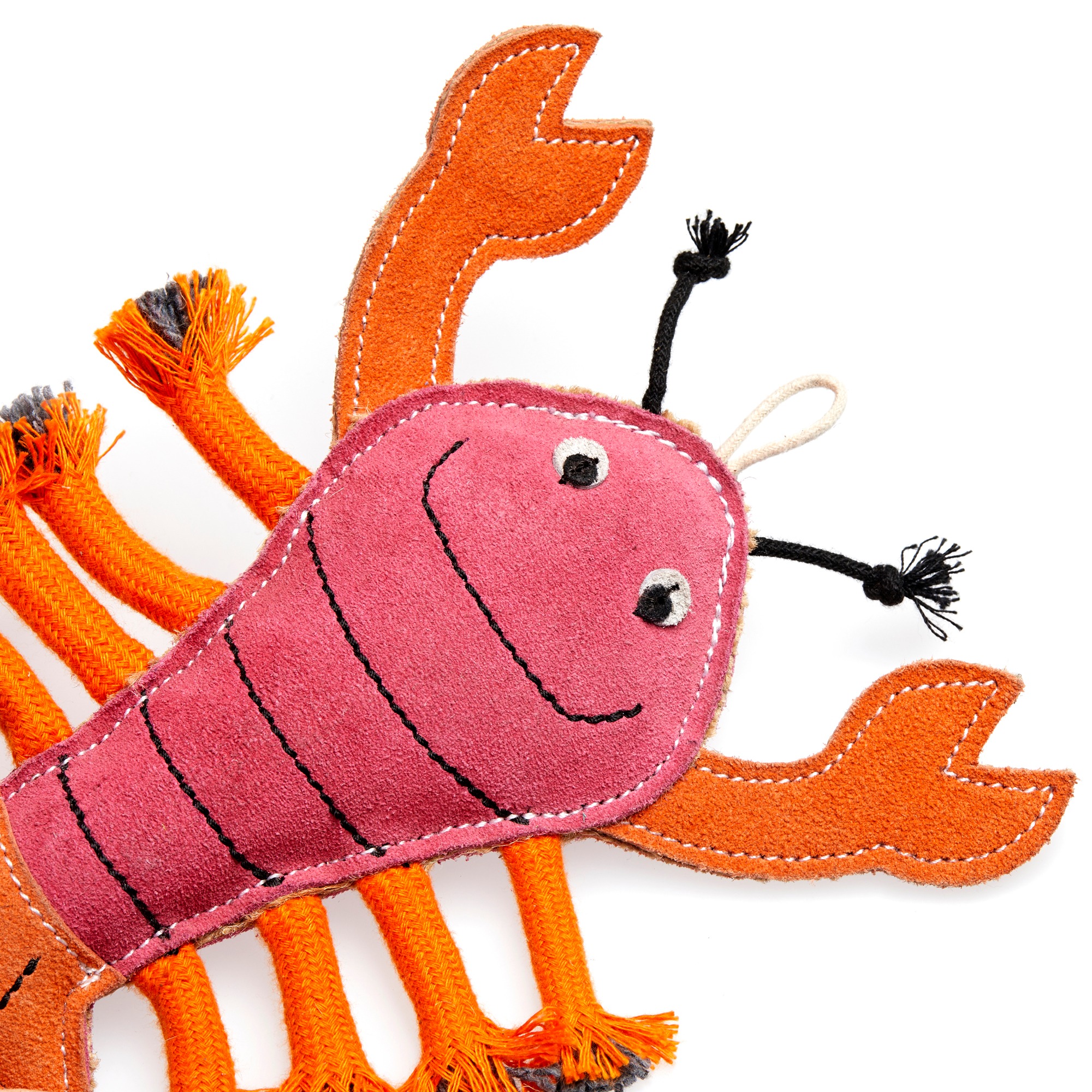 Made from a suede outer with natural stuffing and plaited jute rope legs, this bright and smiley crustacean will make a fun addition to your dog's G&W Eco Toy collection!
