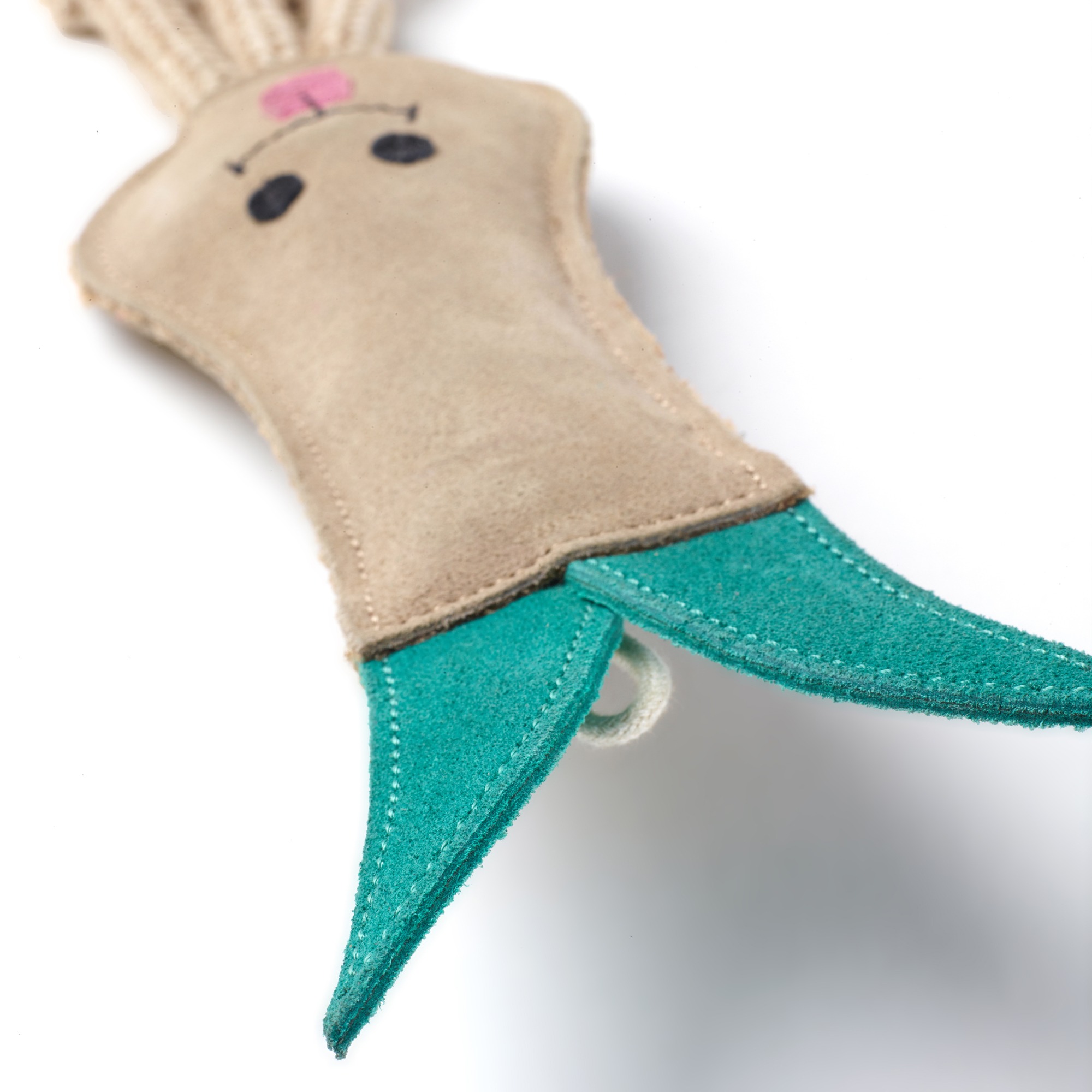 Lenny the Leek is a fun toy made from sustainable jute and covered in soft suede.
