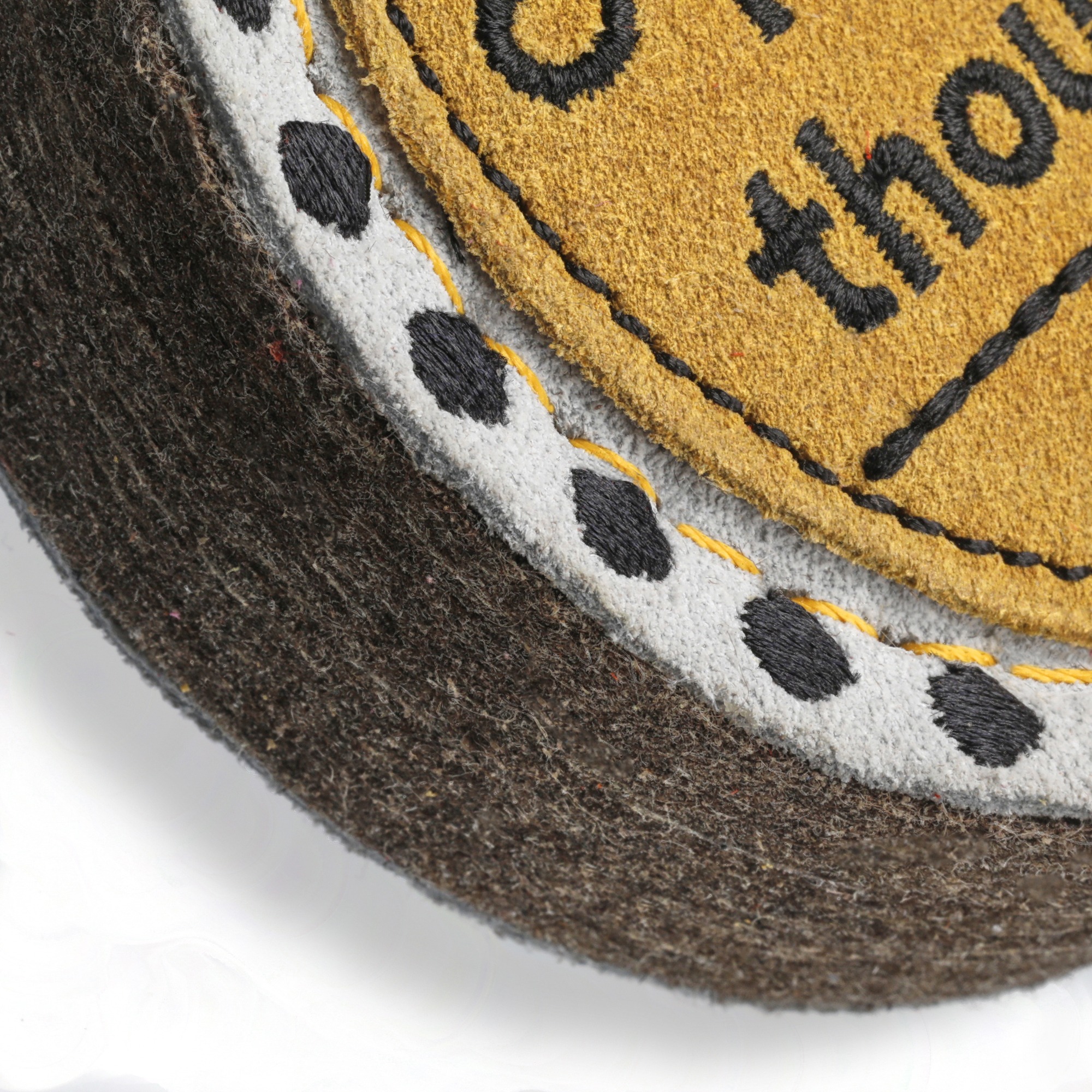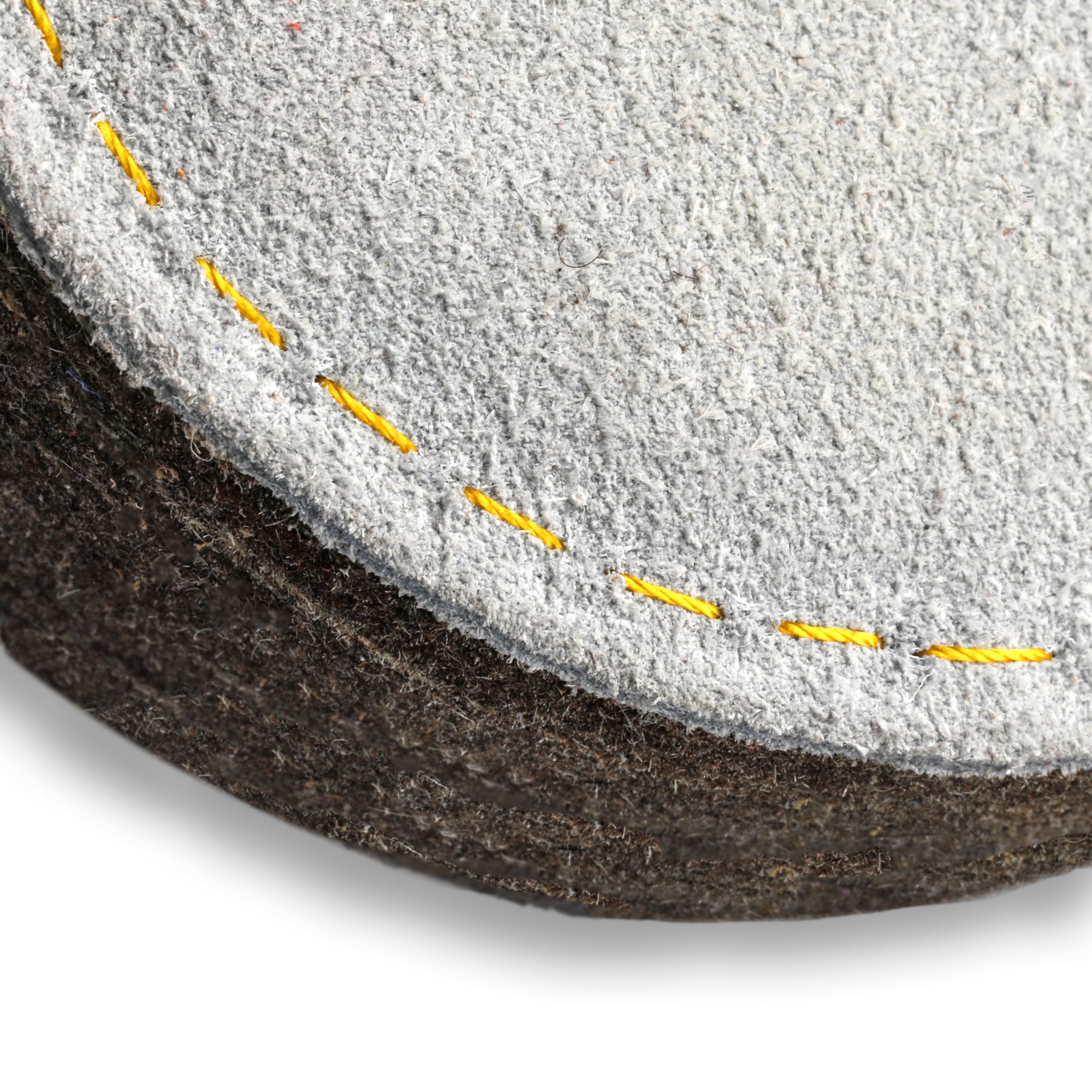 Made from layers of compressed felt and stitched over with soft suede. Wool felt is biodegradable. The suede is a by-product, ensuring that this material is not wasted.