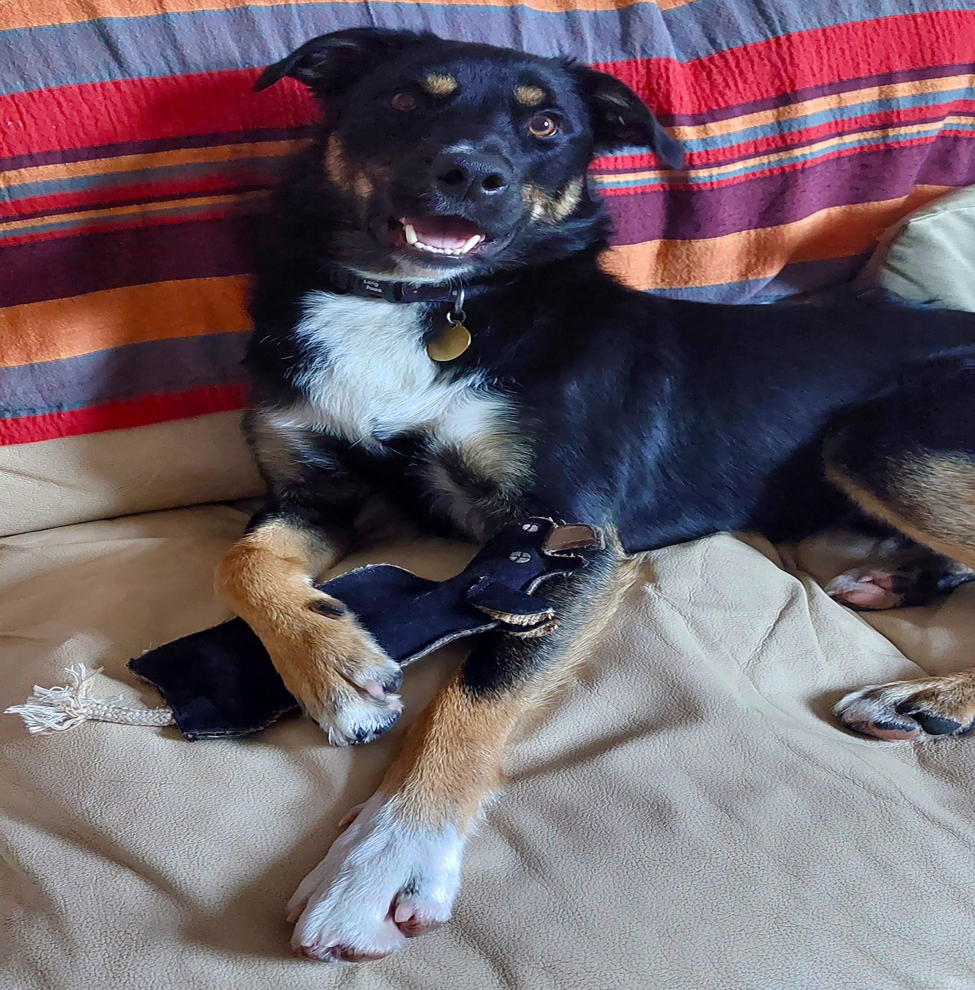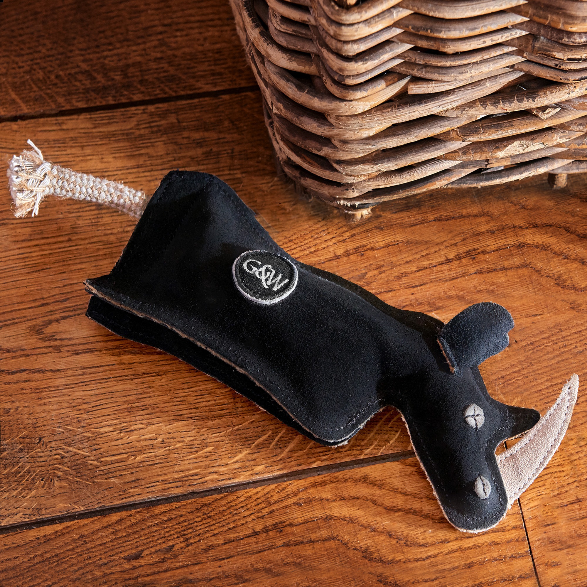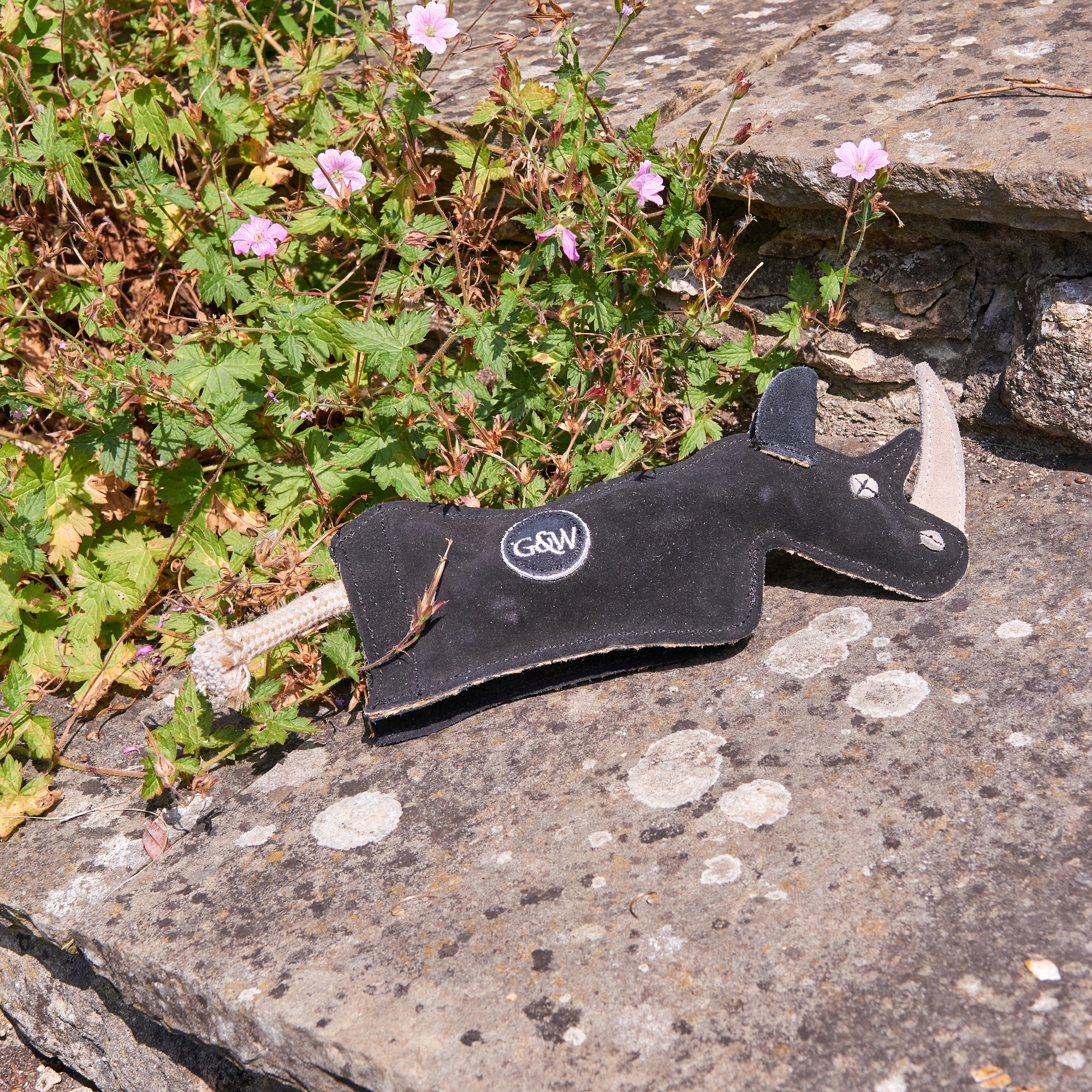Ronnie the Rhino is made from four layers of jute twin stitched over recycled cotton and jute rope, and a recycled bottle to add that "CRUNCH" when playing. Covered in a soft suede, it has a Velcro behind (ooh er missus!) so you can replace the crinkler bottle or add tasty treats to really get some interest. A toy (and a friend) for you and your dog. A great toy for throwing, dogs can have hours of fun with Ronnie.