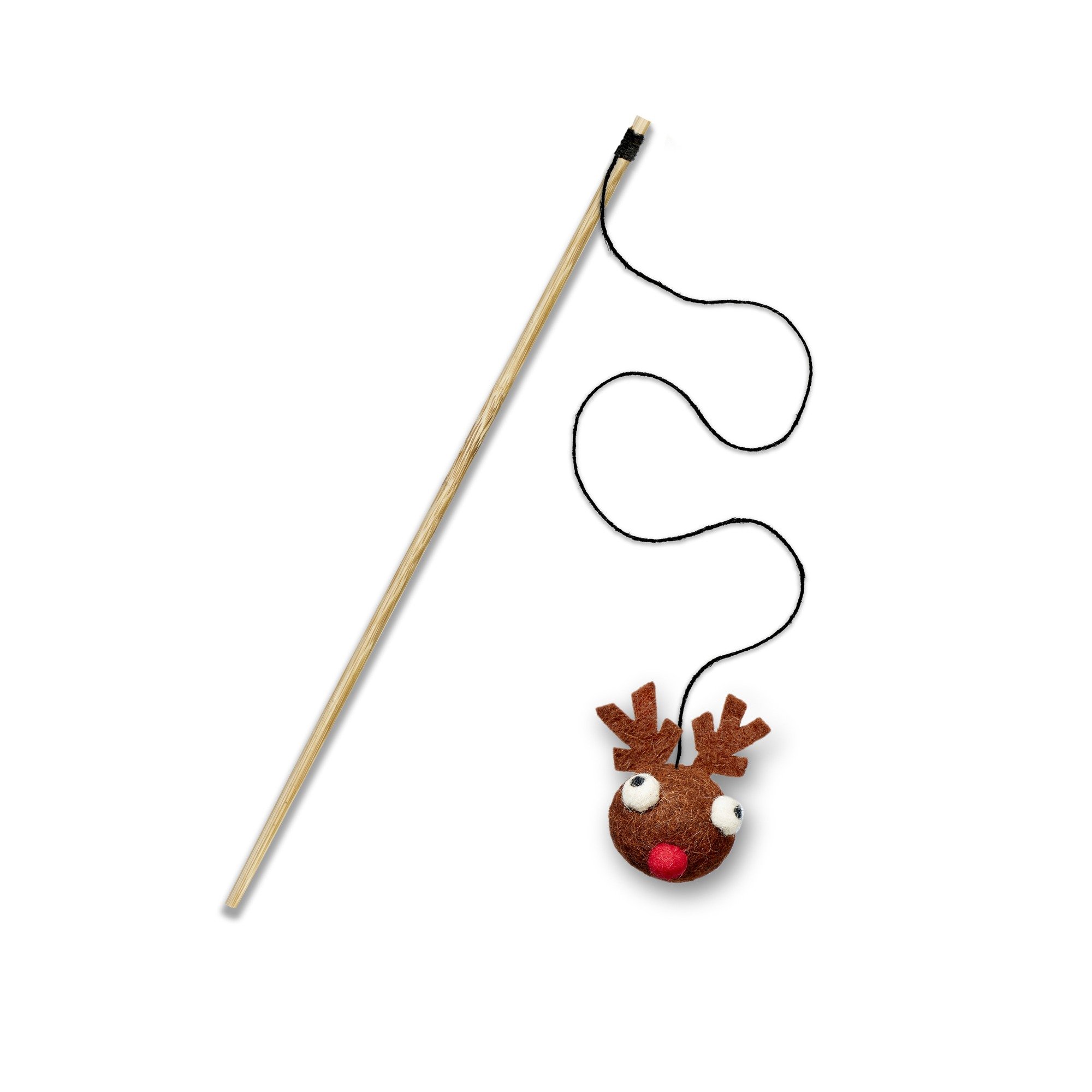 Made with sustainable and natural materials; wool felt, jute string, and a bamboo wood stick. Produced without using any added compound that would harm or be released when chewed.
