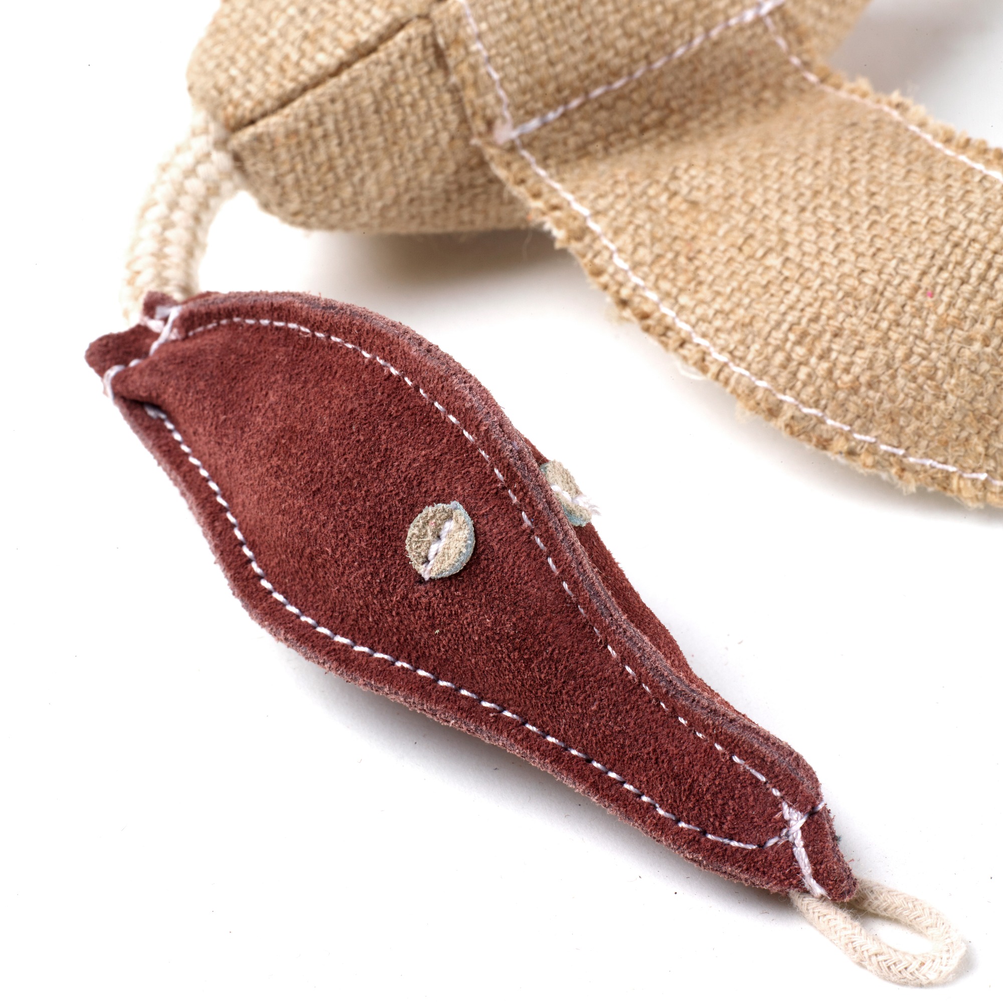 Jute is a sustainable, natural plant fibre. It is tough and long-lasting, and is produced without using any added compounds that would harm or be released when chewed. Jute is 100% biodegradable. The suede is a by-product and ensures this material is not wasted.