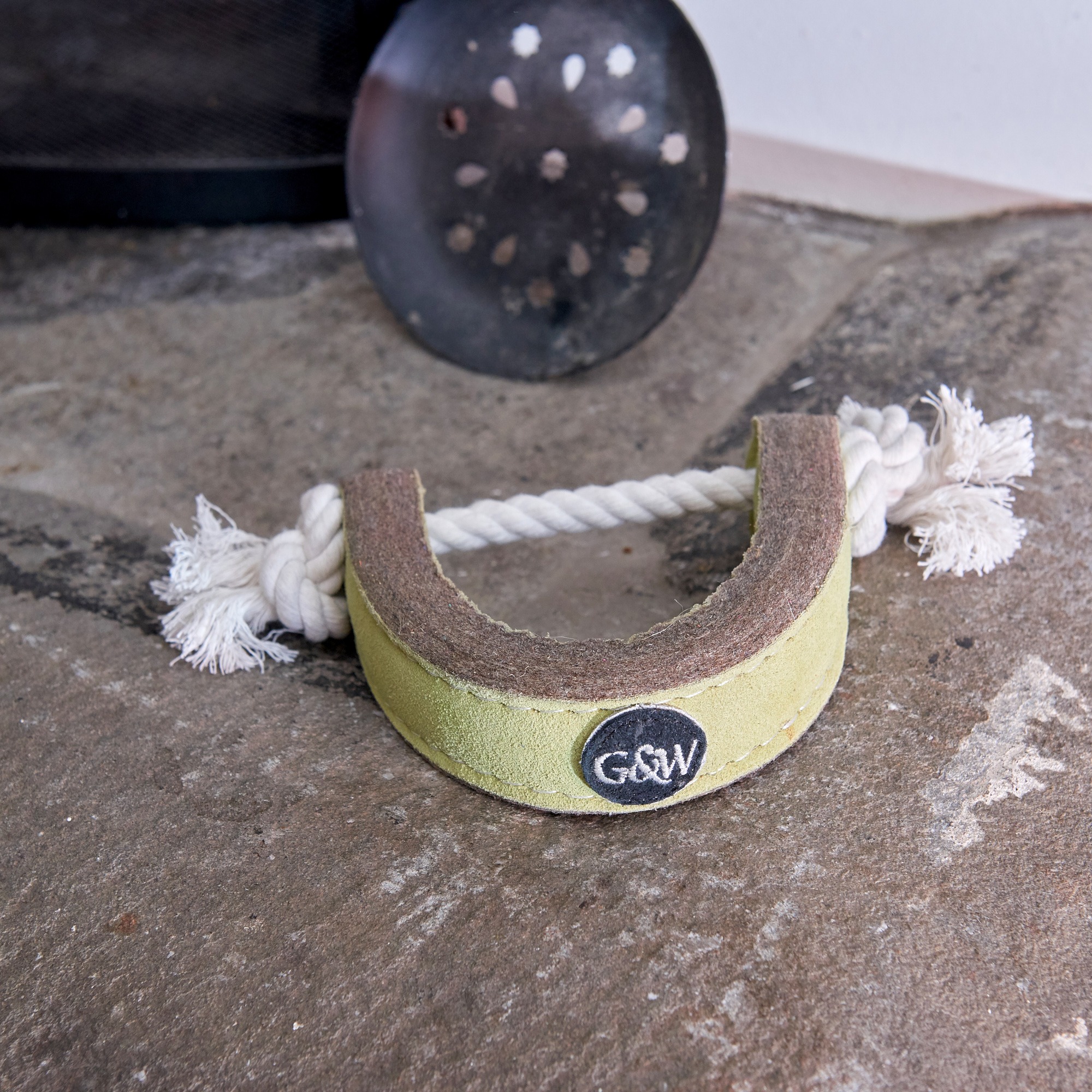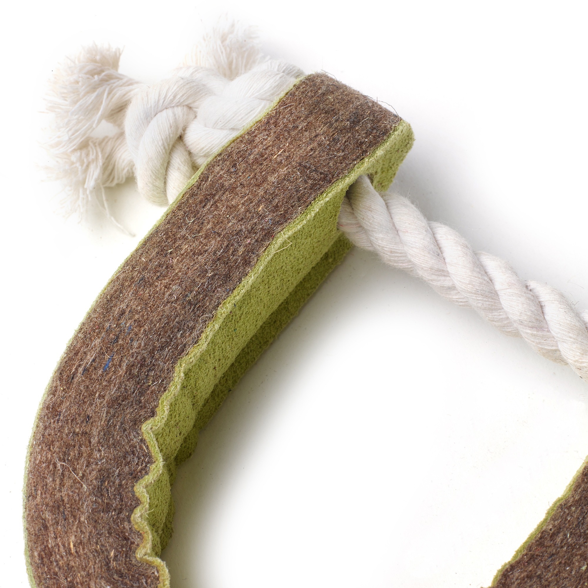 This interactive dog toy is made from layers of compressed felt and stitched over with soft suede. Perfect for a game of tug as well as fetch!