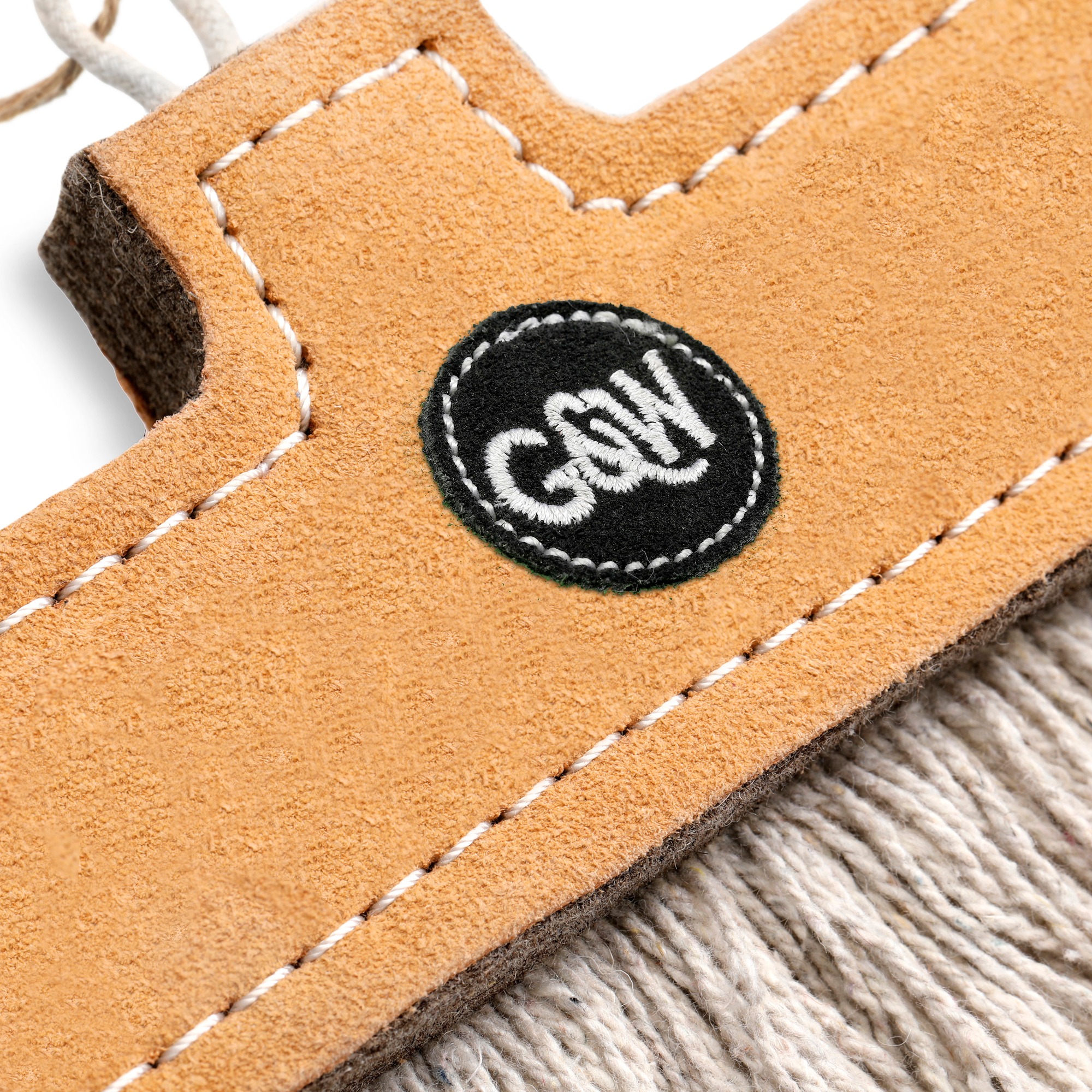 Made from layers of compressed felt and stitched over with soft suede, plus soft rope "bristles".