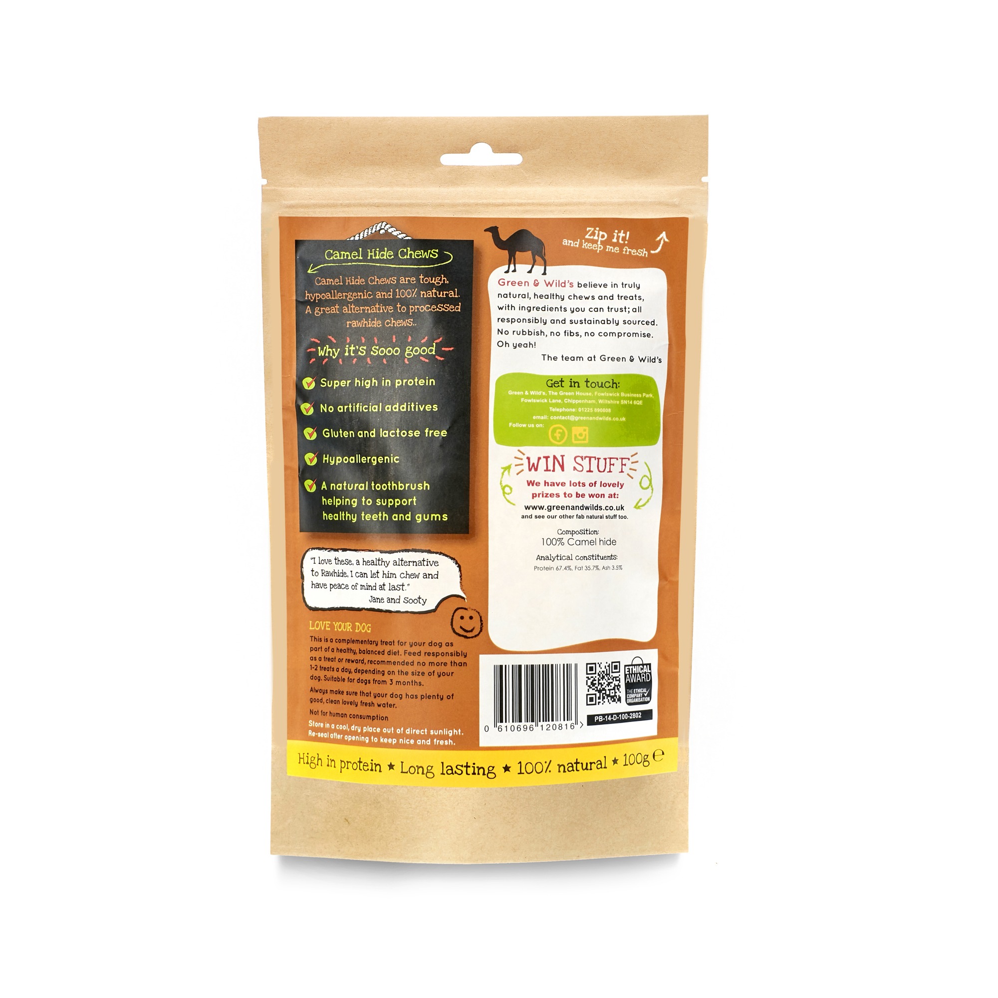 Camel Hide Chews are 100% natural, hypoallergenic, gluten-free, and tough 'n' tasty!