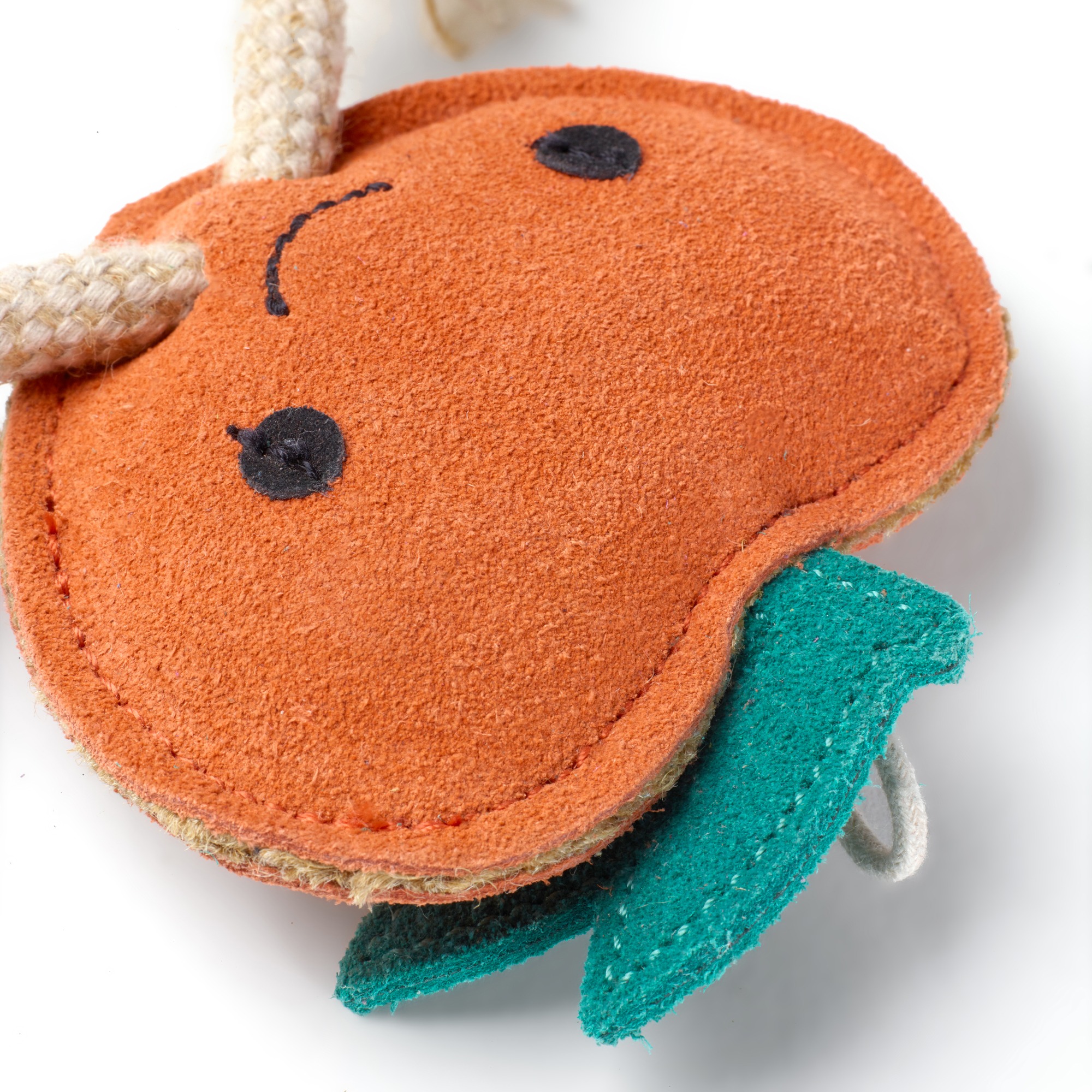 This bright and zesty little satsuma will bring hours of safe fun for you and your pet. Made from 100% natural jute and covered in soft suede, it is safe to chew and is also suitable for smaller mouths to play tug. He'll provide hours of fun for small dogs and cats!